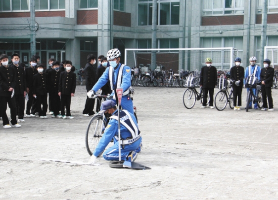 HOME > 中学校ニュース > 全て スポーツ イベント お知らせ お知らせ 2020.12.20 この記事の関連校 東海中学校 東海中で自転車講習 東区筒井1の東海中で14日、県警交通機動隊自転車対策小隊「B-Force(ビーフォース)」による講習があった。通学に自転車を使う1~3年生60人が参加した。 生徒たちは隊員による事故の実演を見学し、ヘルメットを着用した際に被害が少ないことや、一時停止時の正しい止まり方、その際の左右の確認方法などを学んだ。学校北側にある一方通行の生活道路が自転車の運転時に危険だとして、学校と地元県議が講習を依頼していた。 (2020年12月20日 中日新聞朝刊市民版より) 戻る < 一覧に戻る > 次へ