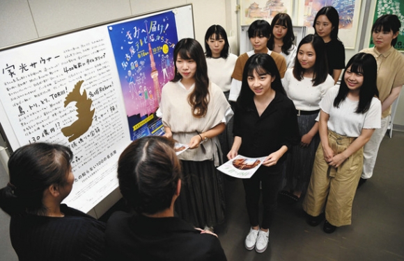 ゼミ生は1日、名古屋観光コンベンションビューローにリーフレット300部を届けた。担当者は「女子大生視点でよくまとまっている。観光や飲食業界の励みになる」と感心した様子。ゼミ長の3年、林珠衣奈(じゅいな)さん(20)は「地元の店を少しでも元気づけられるとうれしい」と語った。