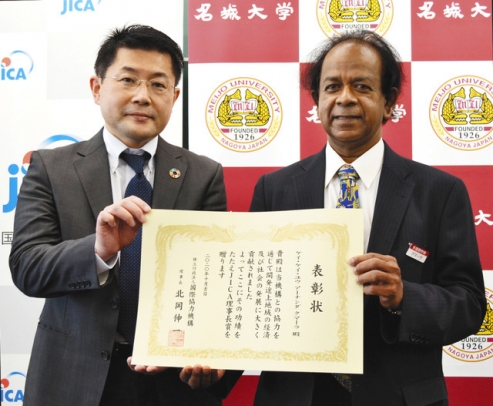 人材育成でJICA理事長賞 名城大・クマーラ教授に伝達式