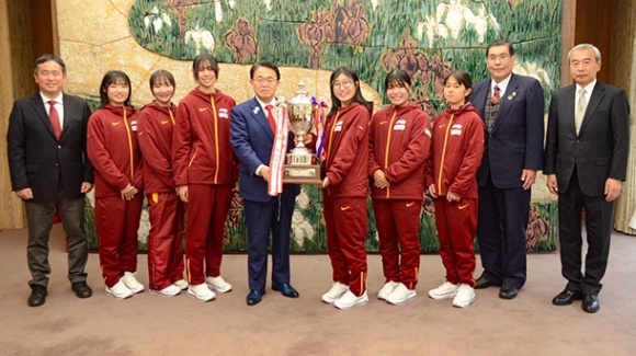 富士山女子駅伝V6 名城大が知事に報告