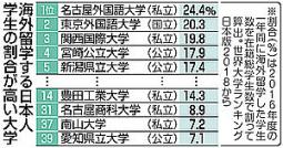 今回の指標は16年度の1年間に海外留学した学生数を総学生数で割って算出。名古屋外大は24.4%で、東京外国語大などを抑えて全国トップだった。