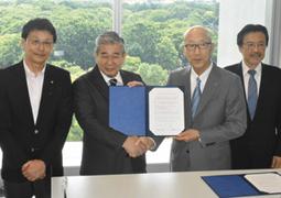 この日、名古屋市北区の愛知学院大名城公園キャンパスで式典があり、環境大実行委の涌井史郎学長と愛知学院大の佐藤悦成学長が調印書を交わした。涌井学長は「次世代の学生と環境問題への認識を共有するのが最重要。意義のある締結だ」、佐藤学長は「両者が手を携え、地球規模で環境問題を考えたい」とあいさつした。