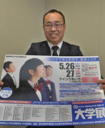 23日には県私立大学広報委員会の大石和史委員長が中日新聞社を訪れ「生徒の興味関心に応じた多種多様な学校がある。志望校選びの参考にしてもらえれば」と話した。入場無料。事前の問い合わせは、同委員会事務局(東海学園大入試広報課)=052(801)1204=へ。
