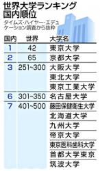 私大では帝京大が藤田保健衛生大と同じ順位に入り、順天堂大、慶応大、近畿大、日本医科大、立教大、早稲田大はいずれも601〜800位。愛知医科大も801〜1000位に入った。