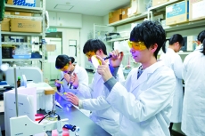 1年次から実験科目を履修し、理論とともに実験スキルの修得を目指します。1年次には、生物や化学の基礎的な実験、2~3年次には専門分野の実験を経験し、4年次の卒業論文研究へとつなげます。