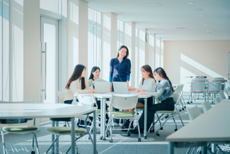 本学は、学院創立130年、大学設立70年を超える、東海地区を代表する名門女性総合大学として、女性のための教育を追求しています。その教育スローガンは、「強く、優しく。」。幅広い学問分野を網羅する各学科・コースでの実践的な教育や、本学が誇る「女性の人生をサポートするキャリア開発」を行い、現代社会のさまざまな分野で活躍できる、強く優しい女性を育成しています。